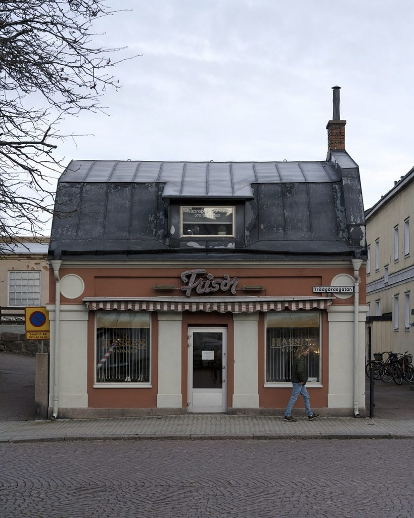 A cute hairdresser's building in Oskarshamn, Sweden: