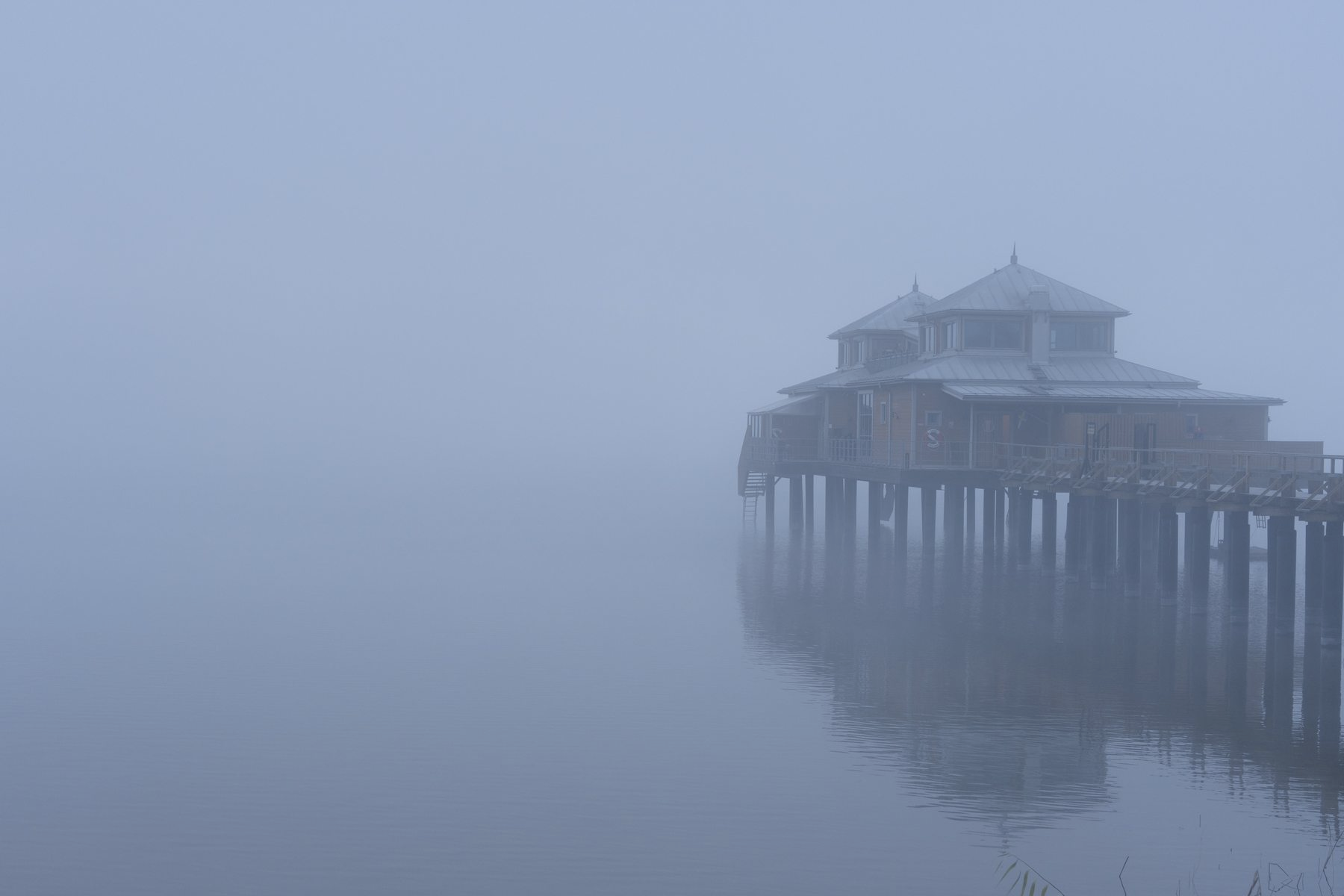 From the same morning, in the same place, houses on the other side of the lake through the fog: